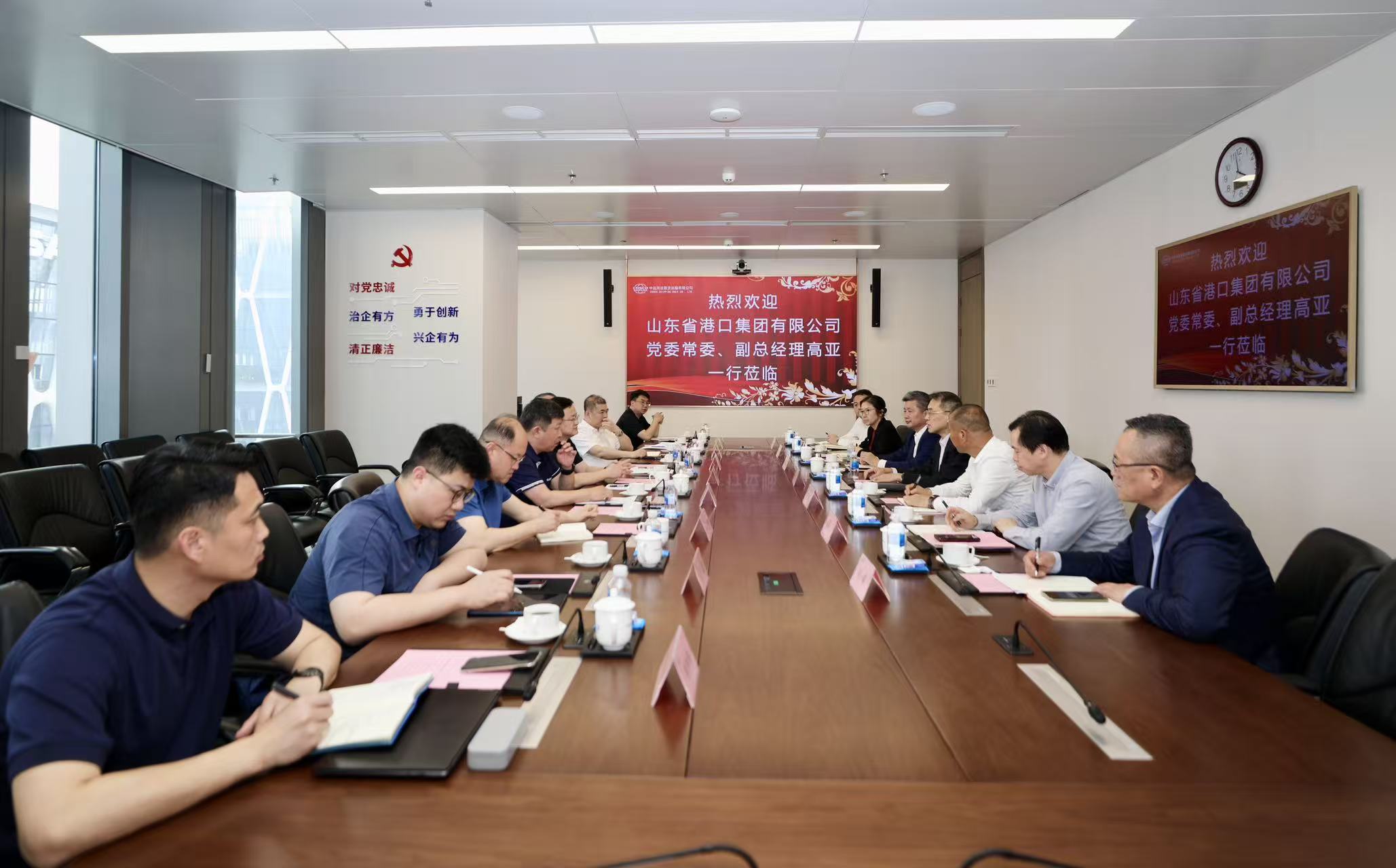 3月25日,苏州港管委会副主任、太仓港口管委会主任邵建林一行,大连海事大学校长单红军一行,山东省港口集团有限公司党委常委、副总经理高亚一行,太仓国际集装箱码头有限公司总经理陈利钿一行分别到访公司,与公司董事、总经理黄南先后进行会谈。公司副总经理李志强,双方相关单位、部门负责人参加会谈。 在与苏州港管委会的会谈中,双方共同回顾了以往友好合作历程,围绕深化港航领域合作、创新协同发展模式等核心议题展开深入交流。双方一致表示,将进一步强化联动协作,持续优化完善航线布局,深化港航物流全链条协同,共同为港航业高质量发展注入新动能。 在与大连海事大学会谈期间,双方紧扣数字智能化应用、科研项目选题落地、专业人才培养等内容,围绕聚焦、定向、深度合作的理念,展开了深入交流探讨。双方将持续深化校企联动,依托共建课题、资源共享等合作模式,推动科研成果转化与人才培养提质,携手赋能航运业高质量发展。 在与山东省港口集团有限公司会谈中,双方就持续深化合作、巩固良好合作关系等议题深入交换意见。双方认为,将通过深化产业链供应链合作,强化相互支持与常态化业务联动,携手打造安全、高效、优质的综合物流服务方案,同心聚力推动港航物流领域协同发展。 在与太仓国际集装箱码头有限公司的会谈期间,双方分别介绍了各自生产经营现状、业务拓展布局及发展规划,共同探讨了优化散货运输服务品质、提升供应链全链条运营效率等议题。双方表示将充分发挥港口与航运企业的资源优势,推动实现优势互补、协同发力、互利共赢。 | |||||||